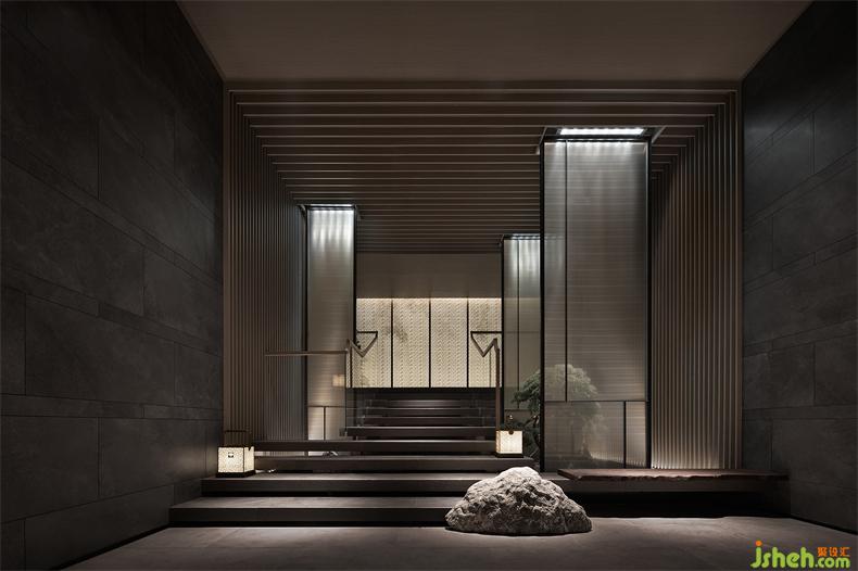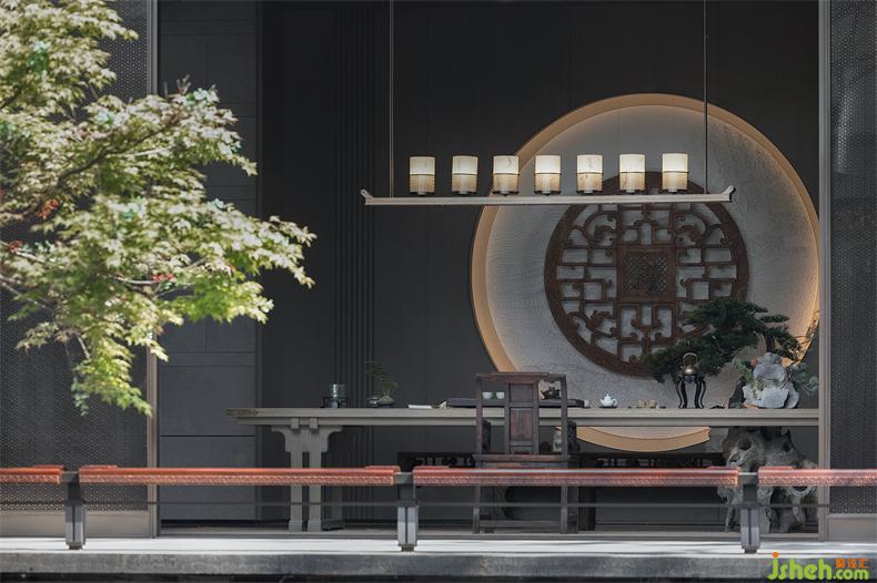 一縷茶煙透碧紗,享慧心之外的茶韻墨香。禪茶區(qū)還原宋茶席規(guī)制,會所設計在流淌的水鏡中呈合圍環(huán)抱之勢,將東方意境恰到好處地彰顯。天花采用萬字紋的圖形以現(xiàn)代手法構造,四面以金屬格柵圍合,以一種虛的“隔”的方式,傳達出傳統(tǒng)東方寫意,也讓當代氣質呼應而出。在此茗一杯茶,捧一本書,晨沐朝霞,夜觀星斗,咫尺乾坤盡在眼前。