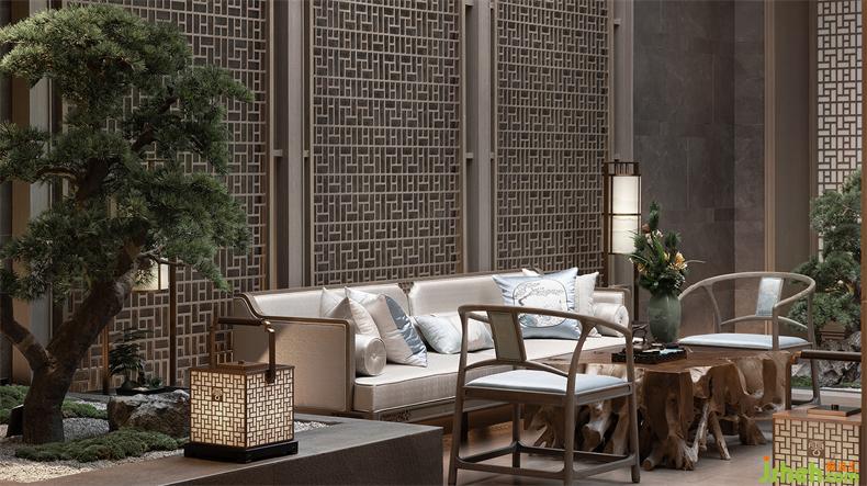 接待大堂整體溫潤(rùn)開(kāi)闊,接待臺(tái)以質(zhì)樸厚重的木頭作為材料面,在屏風(fēng)的映射下,散發(fā)出大氣穩(wěn)重的觀感。