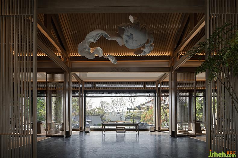 沙盤展示空間采用 “四水歸堂”設(shè)計(jì),室內(nèi)設(shè)計(jì)師其風(fēng)格靈感來源于浙江文化傳承天人合一的理學(xué)思想。
