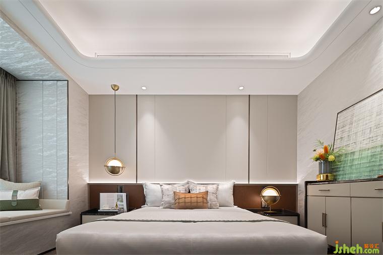 次臥靜謐舒適,優(yōu)雅的暖色調(diào),舒適的材質(zhì),自然的柔和光線,樣板房設(shè)計簡約的線條增加了空間視覺層次,同時豐富整體空間的現(xiàn)代意象。