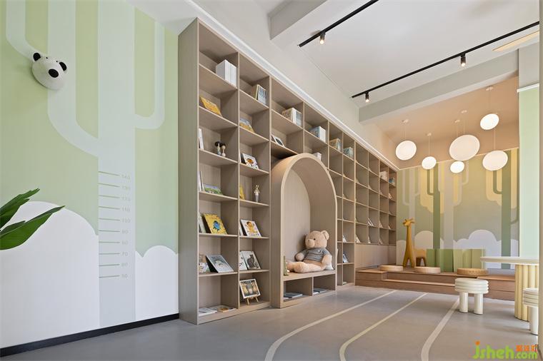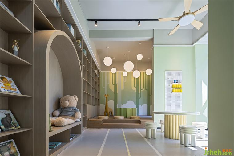 以大象為主題的滑梯恰如孩童的秘密基地,會(huì)所設(shè)計(jì)青蔥綠意的墻面仿佛叢生于大自然之中,打造充滿童趣的森林“樂園”。