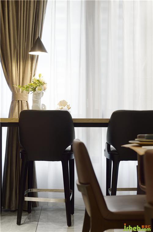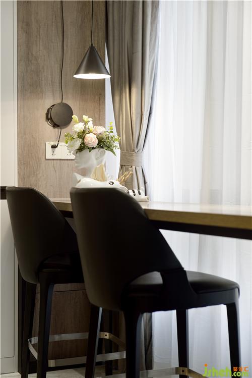 吧臺也在廚房的出門處,這樣業(yè)主在廚房里做飯時,孩子可以在這里寫作業(yè),有學(xué)習(xí)上的問題,家長方便指導(dǎo)監(jiān)督,就不用房間廚房的來回跑了。