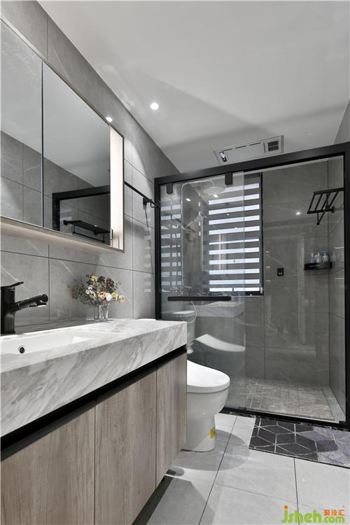 主衛(wèi)生間干濕分離,淋浴房四邊走水設(shè)計,形成中間凸起,四周下凹的形狀,起到排水快的作用。中間整塊大理石拉槽,防滑安全。浴室柜選擇的是一體柜,下面是懸空設(shè)計,方便打掃。浴室鏡子有除霧功能,還有有露有藏的儲物功能。