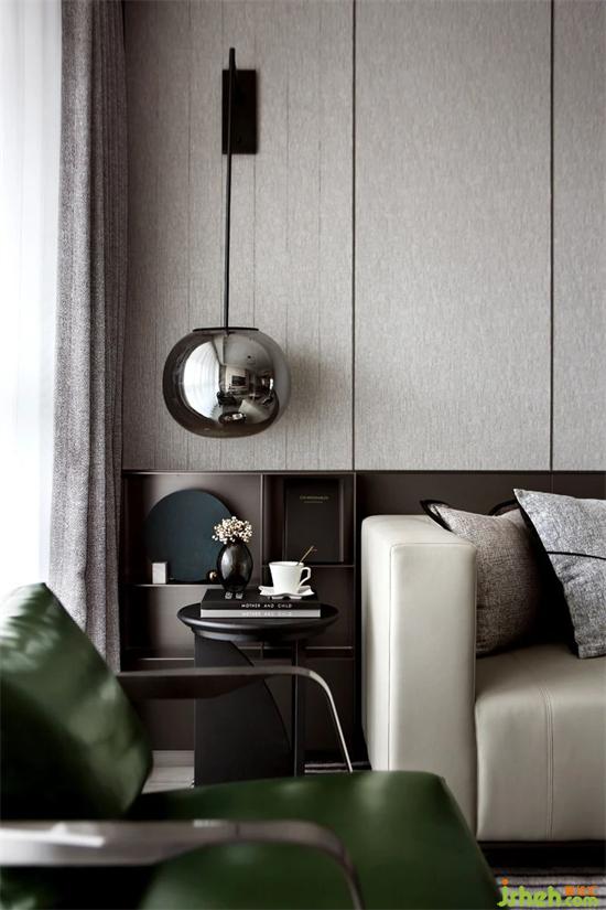 背景墻延續(xù)客廳的精致現(xiàn)代風(fēng),用簡單的線條劃分了區(qū)域,深圳崗宏融湖居精裝提升樣板房設(shè)計(jì)以璧龕的形式存在背景墻中間,整個(gè)璧龕以不銹鋼裝點(diǎn),成為電視機(jī)頗具品味的歸屬??蛷d考究的家具、燈飾和軟裝飾品,無一不彰顯空間輕奢高貴的風(fēng)范。