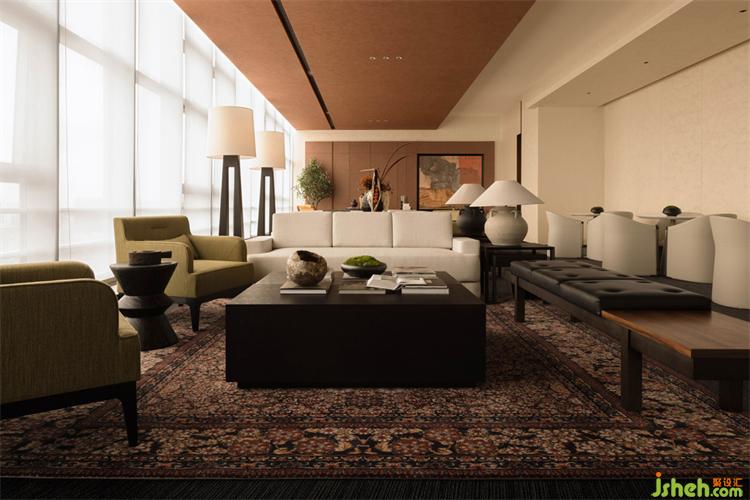 沙發(fā)與地毯都采用天然棉、麻材質(zhì)。在自然光下呈現(xiàn)溫暖而微妙的變化。色調(diào)、材料和空間尺度等多種設(shè)計元素綜合起來,仁恒前海夢公園售樓處設(shè)計共同營造出親切而溫馨的氣氛。