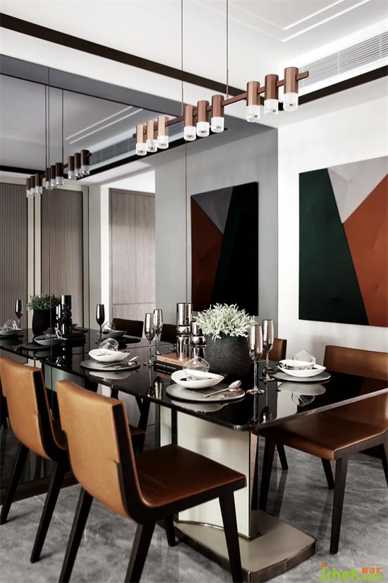 廣州亞運城精裝樣板房設(shè)計師充分地利用每一寸空間,玄關(guān)通往客廳的區(qū)域被設(shè)置成餐廳,餐桌靠墻擺放,緊貼鏡面玻璃墻體。生活的百態(tài)千姿,透過鏡面投射到人的眼中,心中,或?qū)庫o、或波瀾;或平淡,或轟烈,皆是生活最真實的模樣。