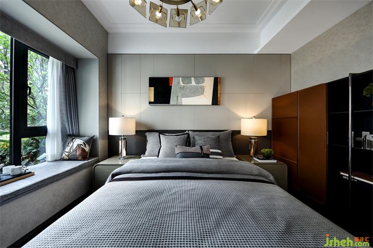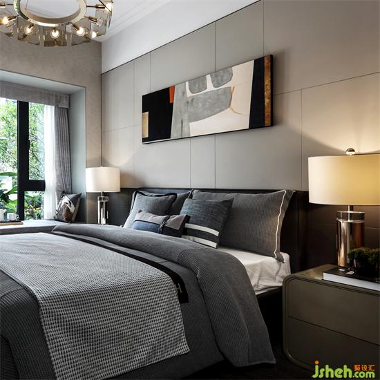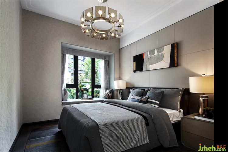 老人房以淺灰為主色,相較于主臥氣質(zhì)更顯雅致,簡潔,給人一種寧靜感。廣州亞運(yùn)城精裝樣板房設(shè)計(jì)床頭燈柔和的光線照射在素雅的墻面上,平添了幾許溫馨,天花低垂的黃銅吊燈,自帶高級感,提升了整體的氣質(zhì),是臥室的點(diǎn)睛之筆。