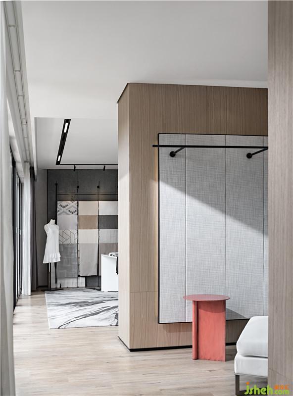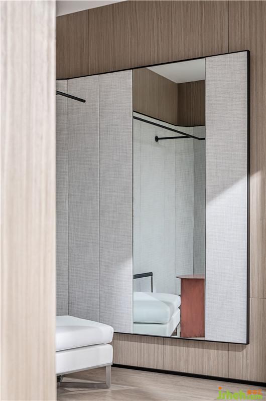二層工作區(qū)域則通過動線的簡單重構(gòu),分立出工作、展示和休憩三個獨立的功能空間。工作區(qū)沒有過多紛繁復(fù)雜的裝飾,卻通過采光井巧妙地鏡框式設(shè)計,將窗外的景色凝入“畫境”,畫面隨著四季輪回、昏晝更替而變化,折射出的自然之美既是空間中的一抹點睛之筆,也是藝術(shù)家“師法自然”的靈感源泉。