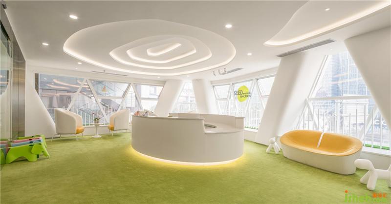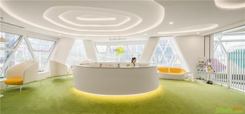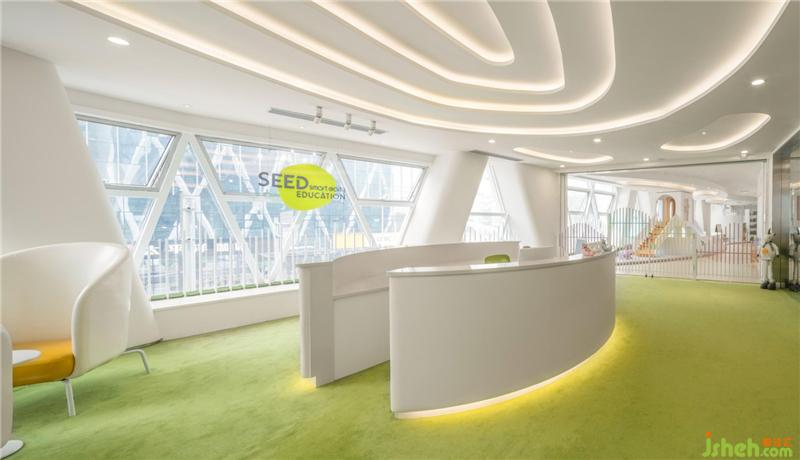 拾“seed”萌芽之意,取logo的“弧”形元素,結(jié)合整個(gè)建筑外觀的框架,我們結(jié)合教育品牌理念希望能提供溫暖舒適輕松自然的空間環(huán)境給每一位小朋友和家長。
