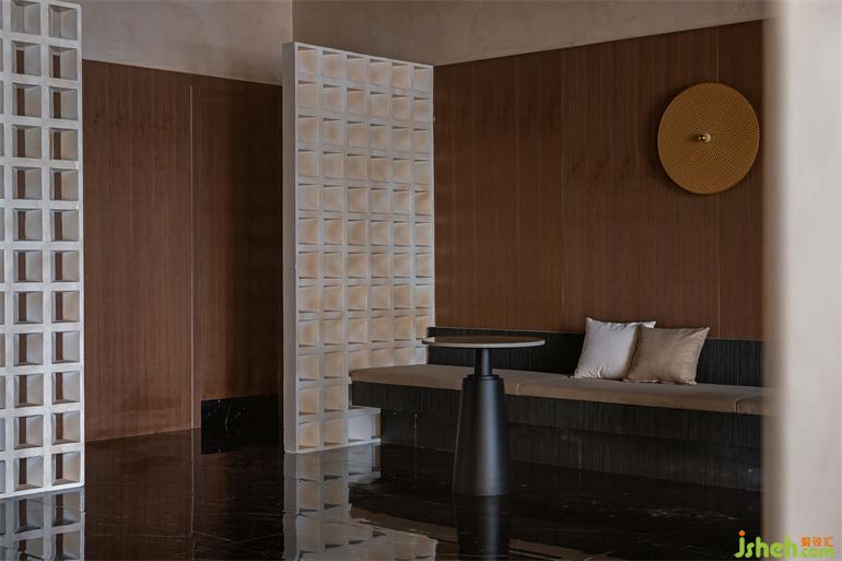飽和度低的色調(diào)構(gòu)建令人舒適的灰度空間,視覺(jué)中心被引至絢麗的裝飾燈處,光暈在鏡面倒影中渲染開(kāi)來(lái)。東方山茶茶室設(shè)計(jì)在結(jié)構(gòu)交錯(cuò)中,凝固的空間注入了流動(dòng)與韻律,也構(gòu)成了東方山茶的品牌基調(diào),將閑適和格調(diào)娓娓道來(lái)。