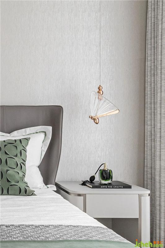 在深棕、淺灰、米白的淡雅色調(diào)中,設(shè)計(jì)選取不同層次的綠色點(diǎn)染于其間,堆疊出空間別樣的色彩層次。墻面的不規(guī)則線性裝置、邊柜的復(fù)古花紋、抱枕的幾何圖案,作為跳脫的藝術(shù)表達(dá),于簡(jiǎn)約中蘊(yùn)藏著雅致的美學(xué)內(nèi)涵。