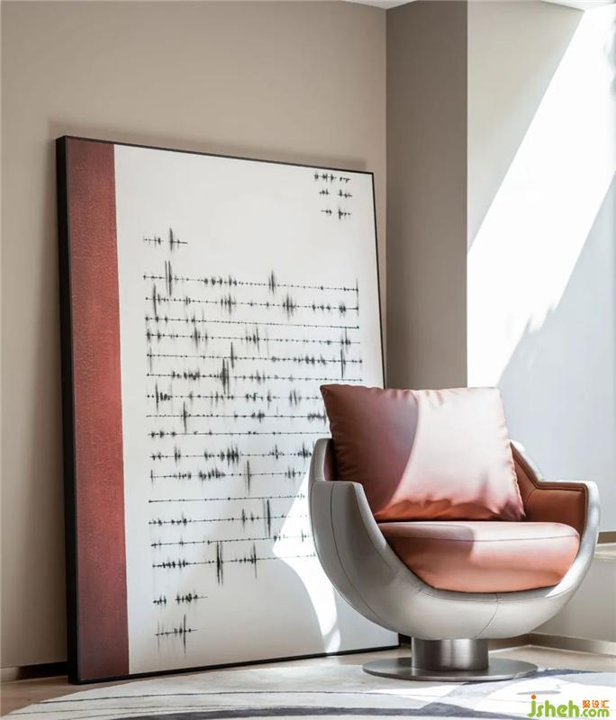 材質(zhì)與色彩、裝飾與藝術(shù)、尺度與比例,在樣板房設(shè)計(jì)的反復(fù)考量下,轉(zhuǎn)變?yōu)槭孢m自如的空間體驗(yàn),從而讓居者從都市的浮躁中脫離而出,在與空間的對(duì)話中抒寫生活的意趣,感知寧靜悠然的心境體驗(yàn)。