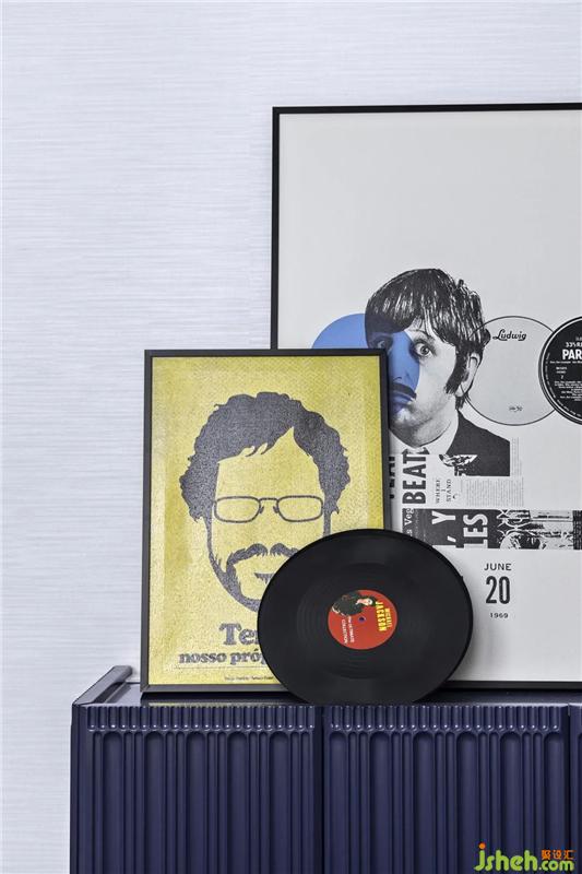 孩童對(duì)于藝術(shù)有著天然的敏感度,在普魯士藍(lán)黃二色對(duì)撞帶來的視覺沖擊下,樣板房設(shè)計(jì)通過The Beatles樂隊(duì)的元素演繹,以及黑膠、尤克里里、小號(hào)的陳設(shè),為男孩創(chuàng)造了一個(gè)精彩絕倫的音樂世界,極大激發(fā)起孩子的無限想象力。