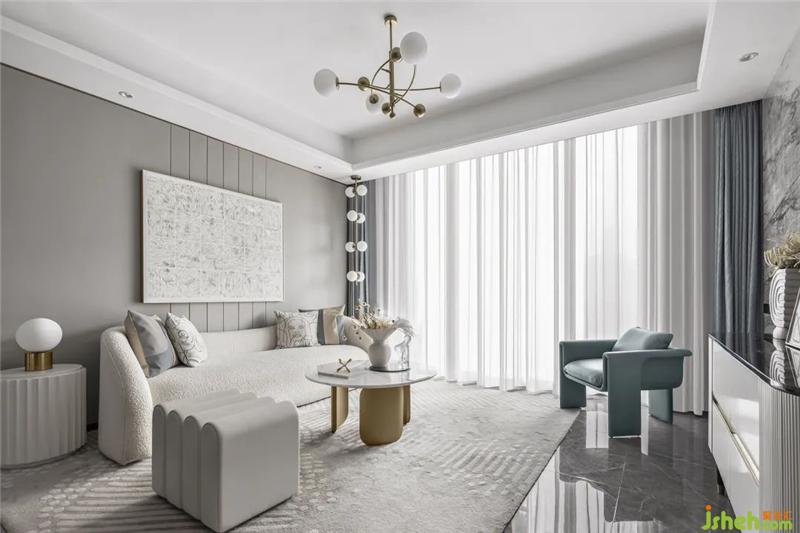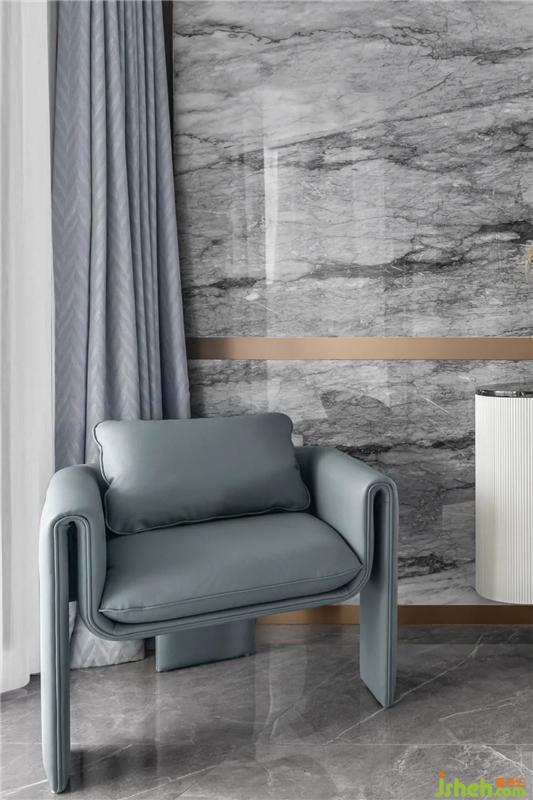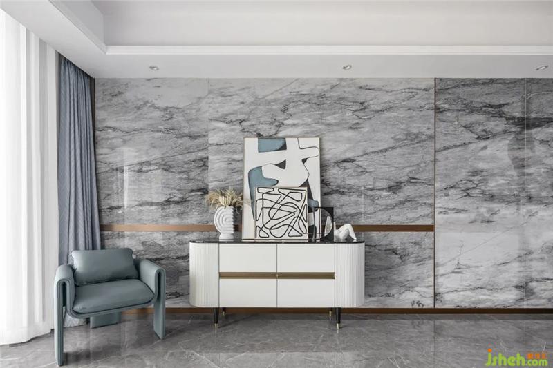 設(shè)計(jì)師在此思考如何通過細(xì)節(jié)的刻畫,建立居者與空間的情感鏈接。在白調(diào)的基底上,毛絨的柔軟沙發(fā)、抱枕的抽象條紋畫、光滑明亮的理石等多種層次的美學(xué)疊加,在視覺與觸感層面,調(diào)動(dòng)起居者對(duì)于生活的豐富感知,實(shí)現(xiàn)嶄新而自在的人居體驗(yàn)。