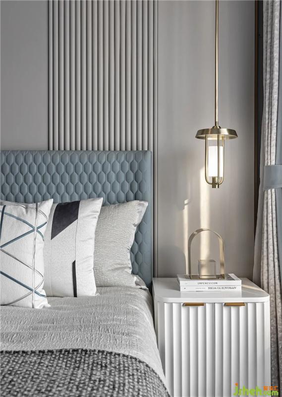 優(yōu)雅而浪漫的空間氛圍,是設(shè)計(jì)師力圖在主臥空間構(gòu)建的格調(diào)。垂墜的金屬線性吊燈、小巧的白色邊柜、復(fù)古歐式裝飾畫,搭配簡練的色彩層次,完美詮釋著優(yōu)雅的空間語境。