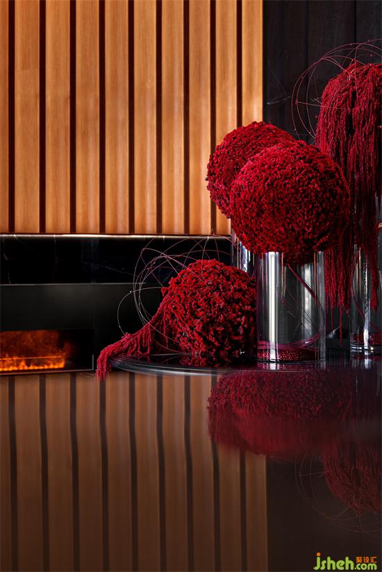 黑色系的墻面與啞光花崗巖、閃耀的燈光、浪漫的壁爐、黑色的真皮沙發(fā),局部點(diǎn)綴跳躍的紅與寶格麗珠寶綠,售樓處設(shè)計(jì)以寶格麗酒店的設(shè)計(jì)元素與理念精華,呈現(xiàn)意式生活的精致與優(yōu)雅。