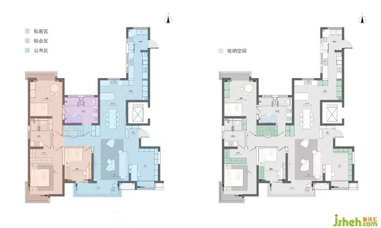 改變男孩房和主臥進(jìn)門墻體,擴(kuò)大過道面積后,新增衣帽間,男女主人的衣物可以分開存放,極大的增加了儲(chǔ)藏量。書房后側(cè)設(shè)置了 L 型儲(chǔ)物柜,可以滿足男業(yè)主儲(chǔ)藏鞋物的需求。家裝設(shè)計(jì)每個(gè)空間都設(shè)有高柜去收納各空間所需要收納的物品,使整個(gè)空間在視覺上保持整潔、舒適。