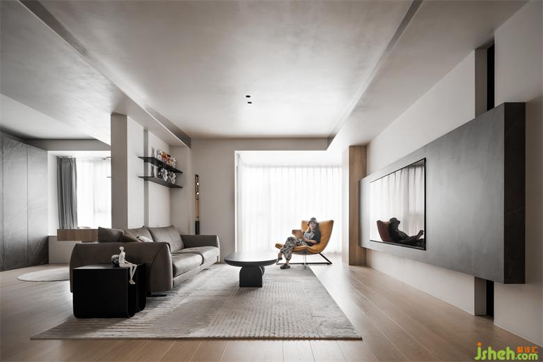 當(dāng)空間重組之后,除了空間更加開闊之外,視覺上也大氣了很多。吊頂采用不銹鋼流線型設(shè)計(jì),間接拉伸了空間層高,也增加了柔軟度。家裝設(shè)計(jì)電視背景墻電視部分用黑色巖板做區(qū)分,后側(cè)用鏡面形成穿插結(jié)構(gòu),使整個(gè)背景富有層次感。