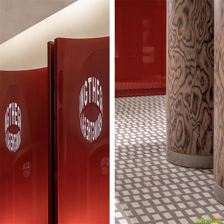 吧臺的木紋飾面被視為一種平面系統(tǒng),猶如咖啡與酒水的兩色交融,在視覺上與空間早C晚A的功能相呼應(yīng)。吧凳的設(shè)計靈感來自于工業(yè)管道?!吨厣?永生花》裝置來自藝術(shù)家張藝法,隱喻著楊浦濱江從“工業(yè)銹帶”到“生活秀場”的更迭現(xiàn)象。
