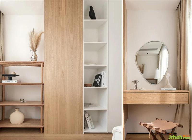 The dressing table near the window sill uses a wooden texture table that echoes the pine wood outside. The seasons have changed. The branches changed from snow white to brown, then greenish, and finally brown again. At this time, the family opposite the building built a new hedge . This large window of borrowed scenery can distract outside attention, but it also allows us to concentrate and watch. The two complement each other.