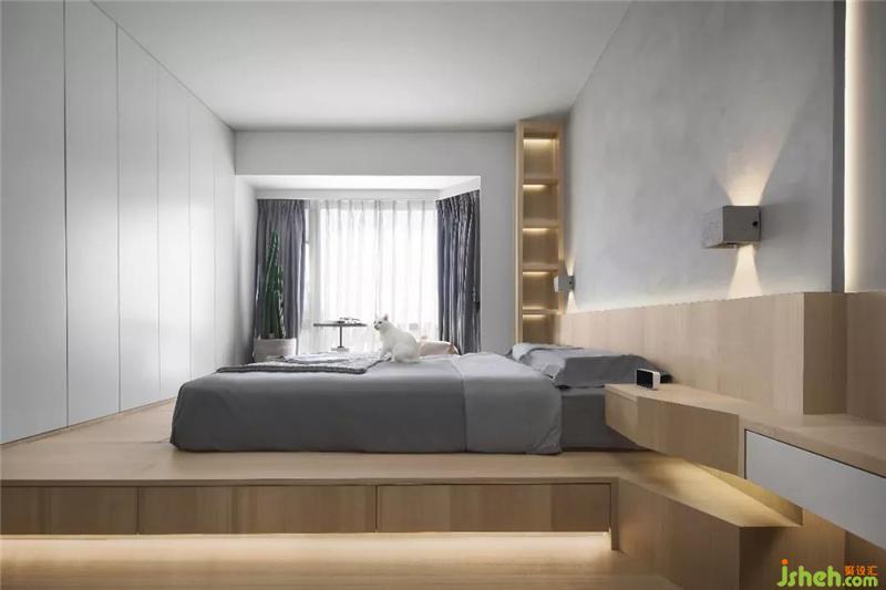 ▲超級溫馨的臺階式榻榻米臥室,兼顧美觀和收納,增加線條式的燈帶,通過燈光營造氛圍,仙氣十足!