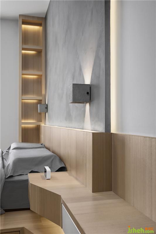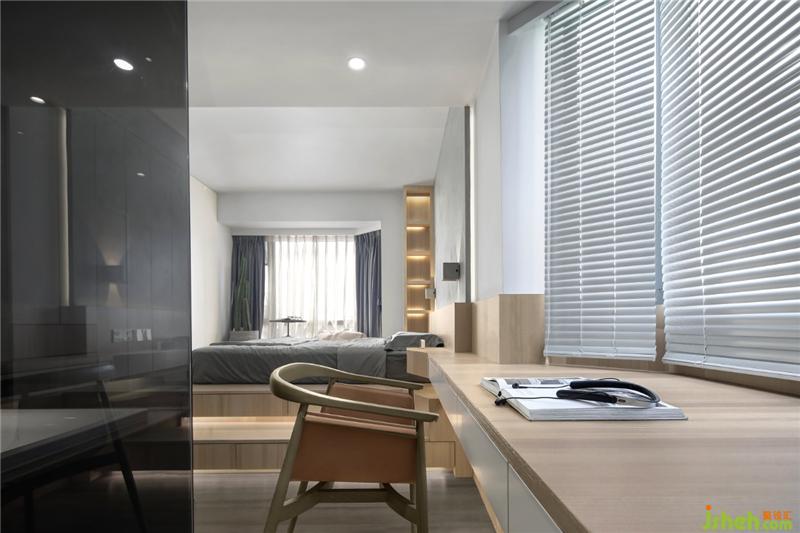 ▲床頭柜和書(shū)桌做連體的設(shè)計(jì),臥室和書(shū)房的連接更協(xié)調(diào)。