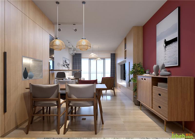 房主是一對新婚小夫婦,男主人從事軟件開發(fā),平時(shí)喜好健身,為人謙和有禮,女主人有日本留學(xué)經(jīng)歷,喜愛日式文化,喜歡日料,音樂,烹飪,旅游,偏愛溫暖的顏色,就像她給人的感覺那樣,如沐春風(fēng)。本案圍繞胭脂紅為主題展開聯(lián)想——粉黛輕點(diǎn)胭脂紅,似水一笑月朦朧,三房兩廳里,迷蒙馬背眠,月隨殘夢天邊遠(yuǎn),淡淡起茶煙。室內(nèi)設(shè)計(jì)師