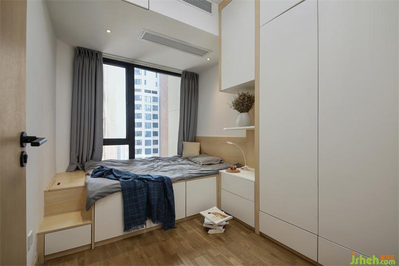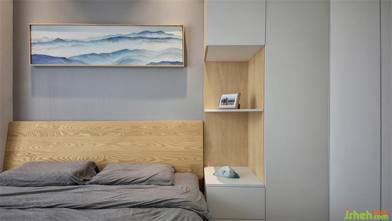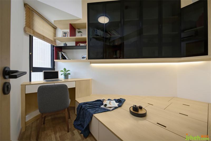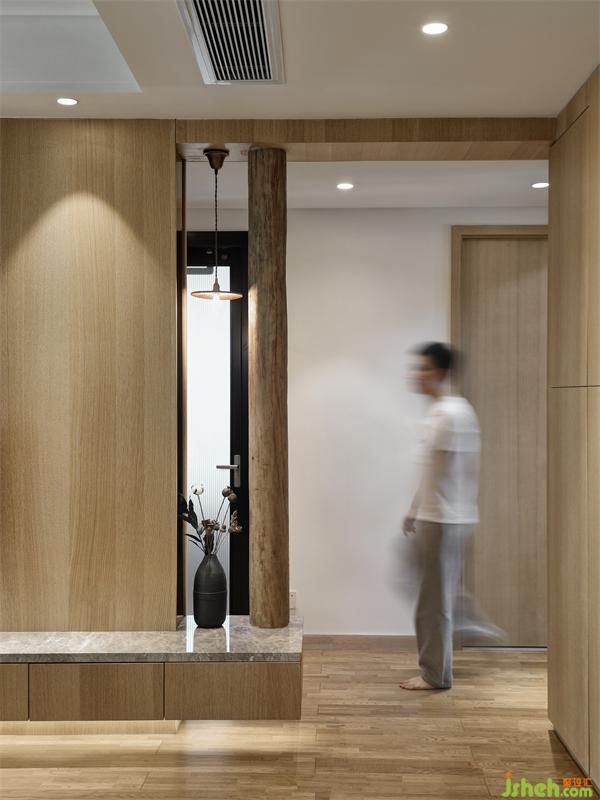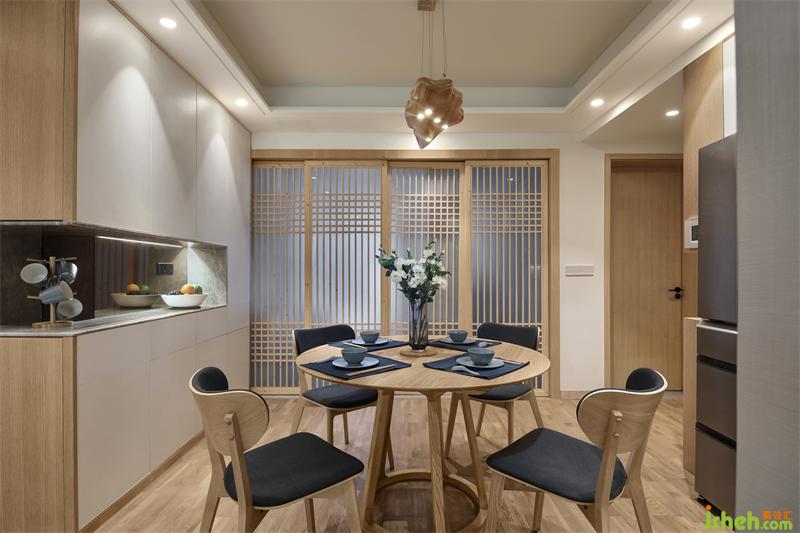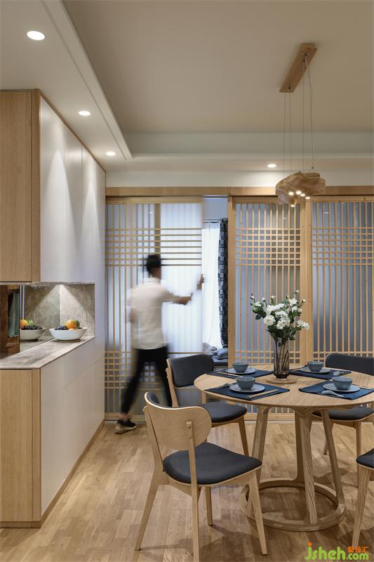 這個難題擺在了我們面前。在探討過程中,我們提出把兒童房和儲藏室的這面隔墻拆掉,改為四扇木質(zhì)推拉門??紤]隱私問題,我們在木質(zhì)推拉門中間加了磨砂玻璃。終于,空間的日式基調(diào)瞬間出來了,同時空間通透性、虛實便很好的在此提現(xiàn)出來!