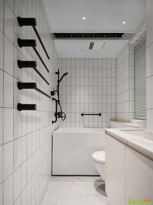 衛(wèi)生間墻面用小面包磚提升空間美感。家居裝修對衛(wèi)生間功能進行詳細的規(guī)劃,保證后期使用的便捷性
