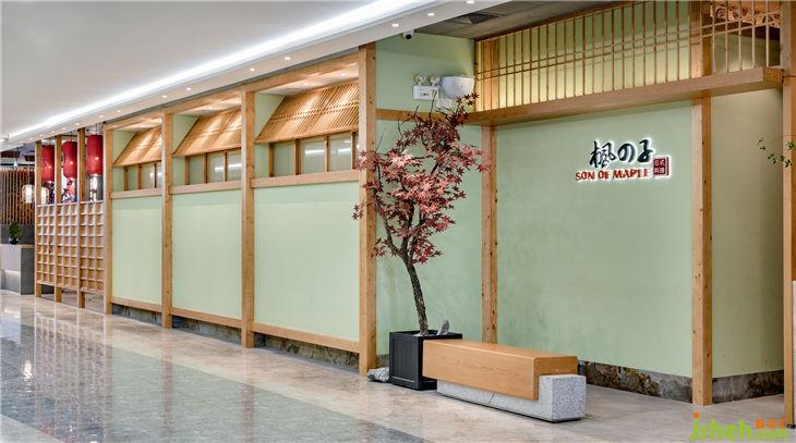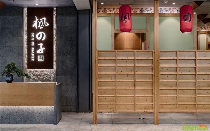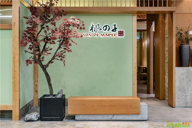 本案重視空間層次感,使用多隔讓整個空間流動與分隔,搭配簡潔、硬朗的直線條,迎合日式風(fēng)最求內(nèi)斂、質(zhì)樸的設(shè)計風(fēng)格。芥末綠墻面與木質(zhì)柵欄推拉門搭配,墻上內(nèi)陷白底紙傘紋,墻下楓樹三三兩兩裝飾,混搭少量現(xiàn)代裝飾,讓整個空間淡雅節(jié)制、深邃禪意,風(fēng)格獨(dú)特鮮明,一眼望見。