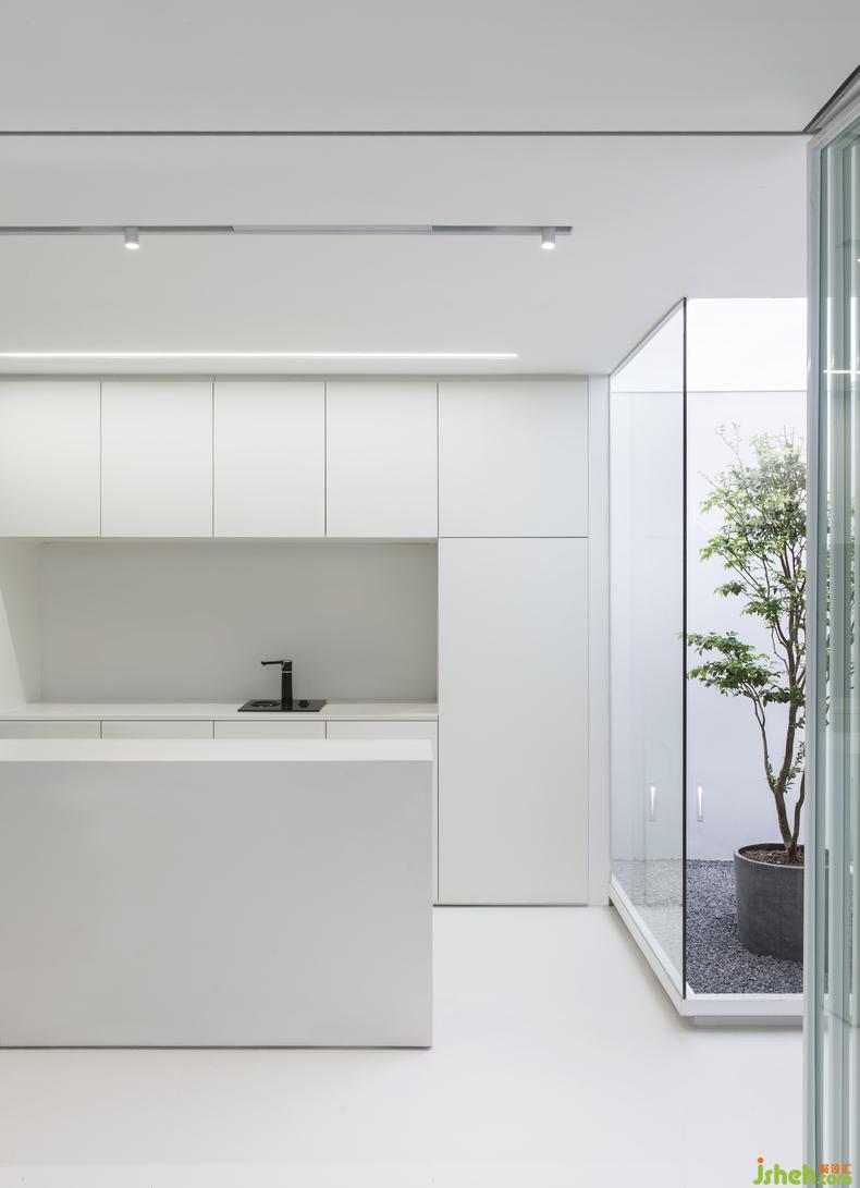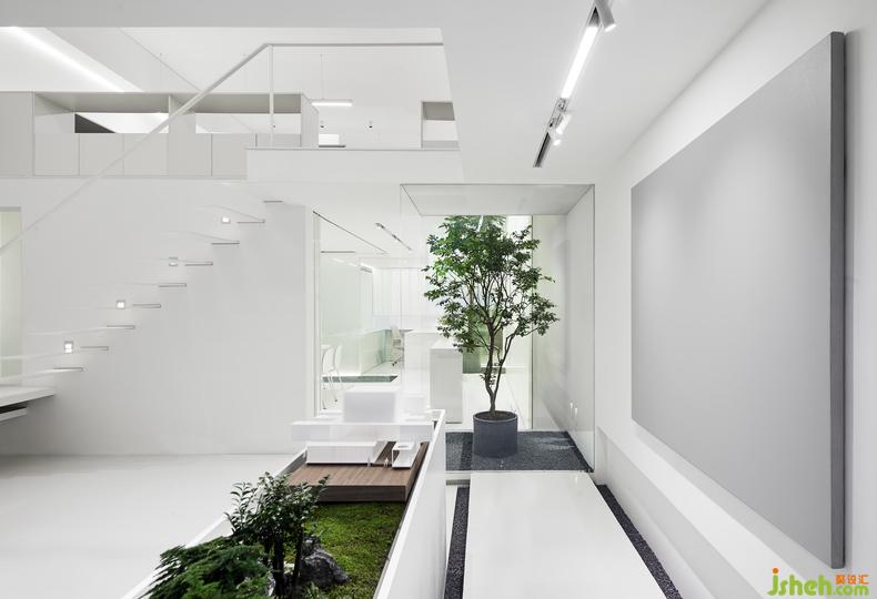 設計中剝除了材質(zhì)與色彩干擾,純白空間的運用強化了空間的關系和氛圍,同時讓室內(nèi)的植物蔥郁而又安寧。設計師試圖在空間中打造出多樣化的園林空間,連續(xù)的平面布局在封閉,半通透,通透的空間中,東方式的猶抱琵琶半遮面,未成曲調(diào)先有情。