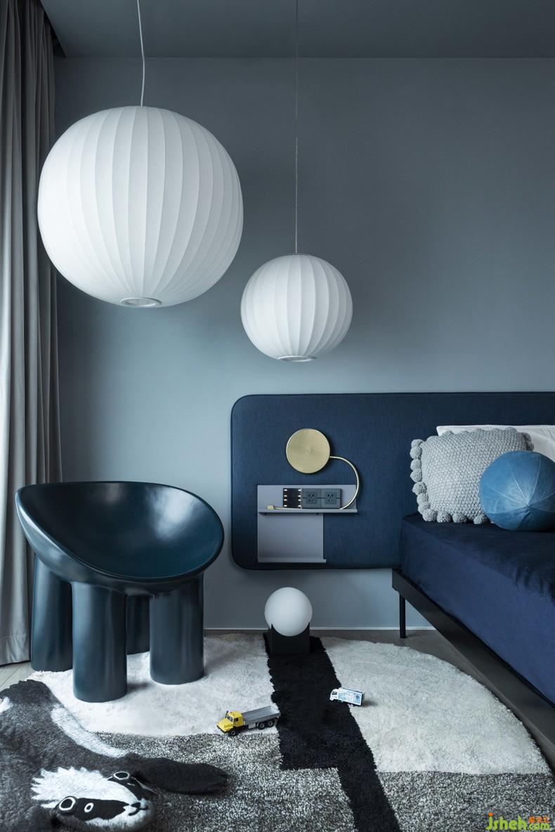 男孩房的設(shè)計(jì)注重其性別上的心理特征,滿足了男孩強(qiáng)烈的動(dòng)漫等英雄情結(jié),也體現(xiàn)出活潑、動(dòng)感的性格需求,設(shè)計(jì)師一方面考慮到安全性柔化了所有家具的邊角,另外將小男孩喜愛的玩具作為裝飾,大平層設(shè)計(jì)活躍空間氛圍。在兒童房的設(shè)計(jì)上,設(shè)計(jì)師認(rèn)為空間應(yīng)具備使用者的同步成長(zhǎng)性。因此摒棄目前各種具象生硬、過度裝飾、浮于表面且缺乏想象力的兒童空間設(shè)計(jì)手法,轉(zhuǎn)而從空間形態(tài)本身的趣味性出發(fā),大平層設(shè)計(jì)將整個(gè)空間本身打造成一個(gè)具有成長(zhǎng)性的空間,讓孩子毫無束縛地、自發(fā)地去探索、發(fā)掘和創(chuàng)造屬于自己的趣味空間。