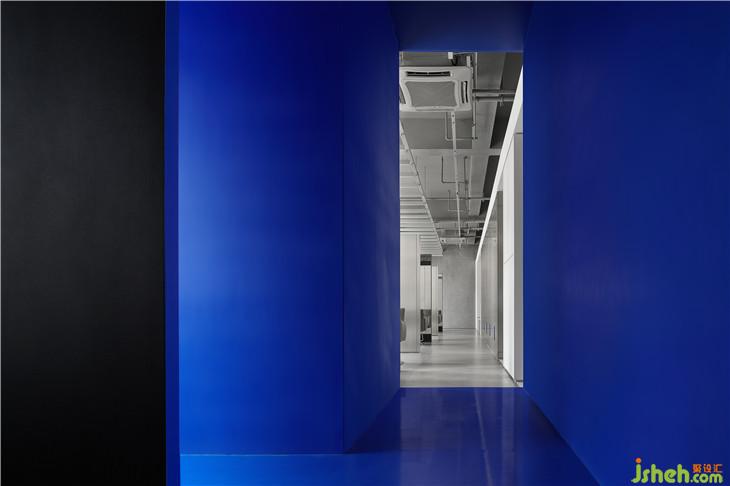 外立面采用粗獷的清水混泥土,不做冗長(zhǎng)的外在修飾,彰顯一種富有張力的空間美感;穿梭其間的那一抹藍(lán),明凈而空曠,無(wú)限延伸至虛無(wú),飽含頑強(qiáng)的藝術(shù)生命力。二者結(jié)合,一種特立獨(dú)行的距離感油然而生。