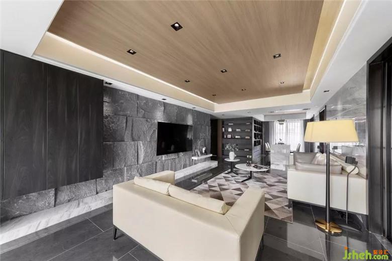 電視背景墻室內(nèi)設(shè)計師選用了天然粗山石,雖然單獨(dú)看它會覺得有點(diǎn)「粗糙」的味道,甚至不適合用在家里,但我們在頂面使用了木質(zhì)飾面板,搭配4000k的暖白光源,讓房間溫暖舒適,絲毫不會覺得冷清,演繹出別樣的煙火氣。