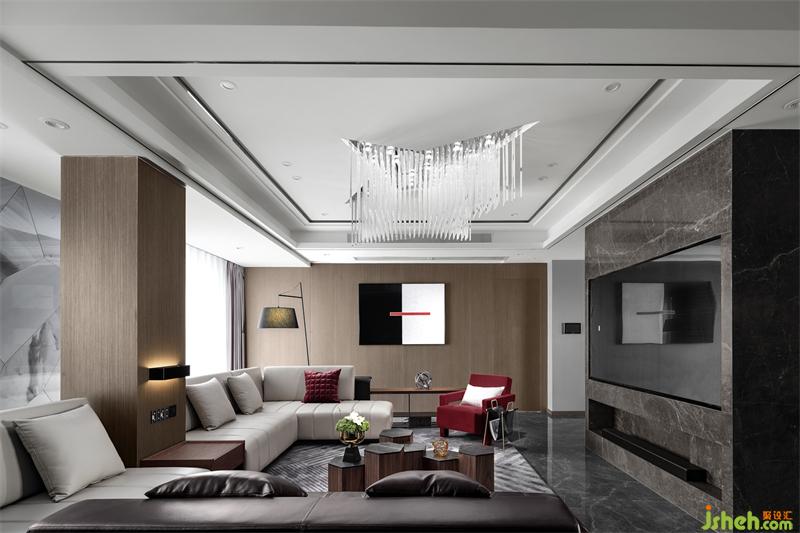 在家具選擇及硬裝的紋理質(zhì)感上則選擇更貼近自然的元素進(jìn)行搭配。比如大理石的電視墻,飾面板的墻面,從材質(zhì)、紋理、色彩、藝術(shù)與家具的精妙組合,讓家的意境層次“和而非固,自在有趣”。