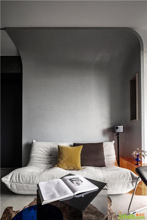 沙發(fā)背景墻造型是客廳的一大亮點,通過切割面的形式出現(xiàn)。色彩上與沙發(fā)相呼應,材質(zhì)上選擇灰色藝術(shù)涂料,凸顯啞光的質(zhì)感,在修飾了原先的墻面的基礎(chǔ)上,也讓空間顯得更有層次感,自然、立體。在沙發(fā)背景墻的右邊開了一扇窗洞,對應的里面是電源插座,在使用投影儀還是日常充電時,都十分方便。