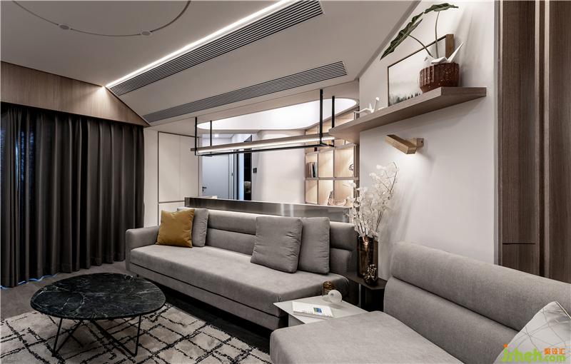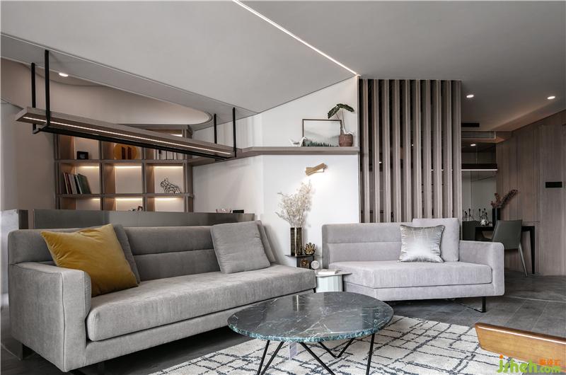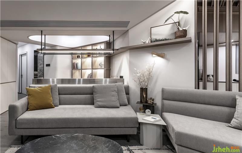 在經(jīng)過(guò)挑選,業(yè)主喜歡上這款沙發(fā),與隔斷有異曲同工之妙,隔而不斷,保持了整體統(tǒng)一性。鐵藝結(jié)構(gòu)的灰色布藝沙發(fā),灰色的抱枕搭配沙發(fā),整體統(tǒng)一又有溫暖的感覺(jué);室內(nèi)裝修設(shè)計(jì)再搭配一兩個(gè)跳躍的亮色、黃色的抱枕形成對(duì)比,活躍空間。成品的鐵藝大理石茶幾,外觀時(shí)尚簡(jiǎn)約,與整體的氣質(zhì)十分符合。
