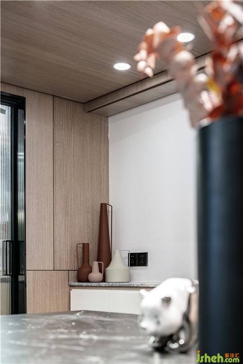 圖為餐廳旁邊矮柜,以及矮柜上面的陶瓷擺件
