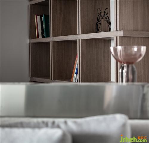 圖為沙發(fā)里的邊幾上面的小擺件、小飾品,木質(zhì)隔斷