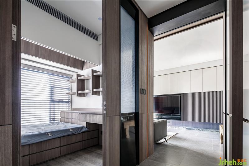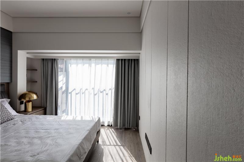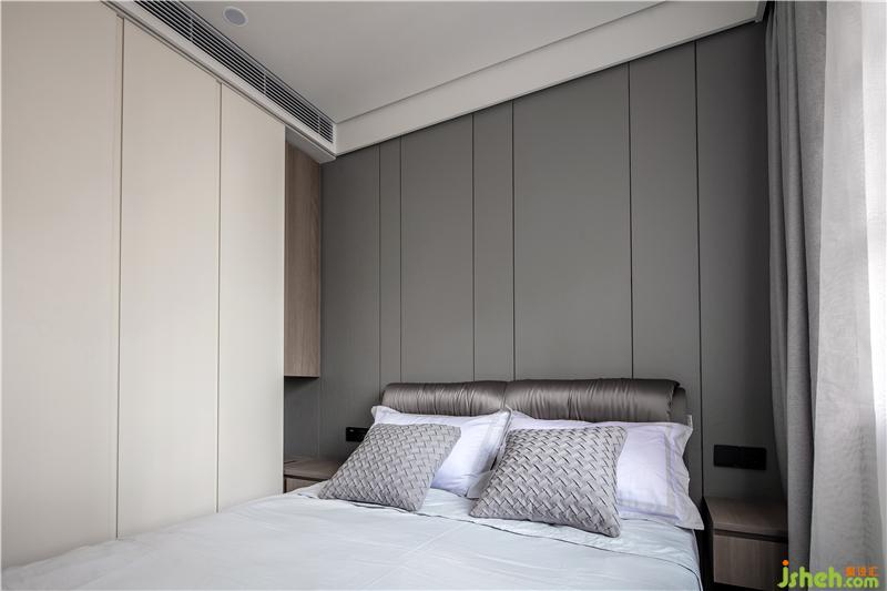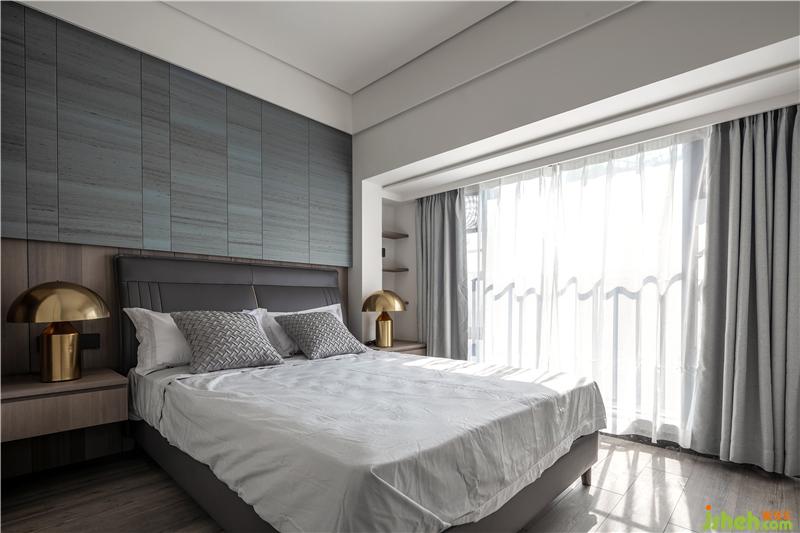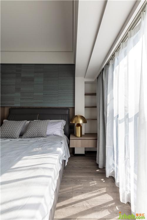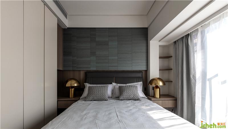 材質(zhì):木紋硬包、床頭柜(現(xiàn)場制作)、木地板、雙層窗簾、烤漆板