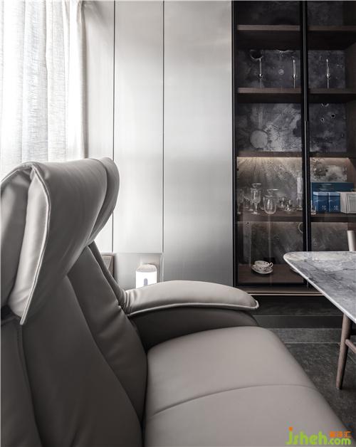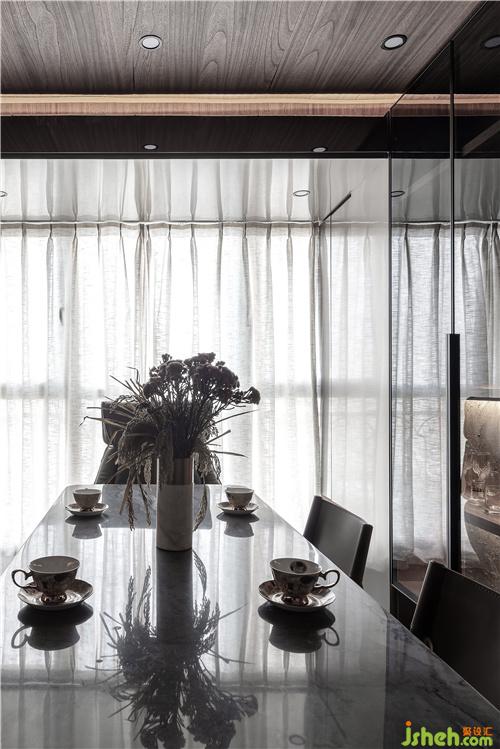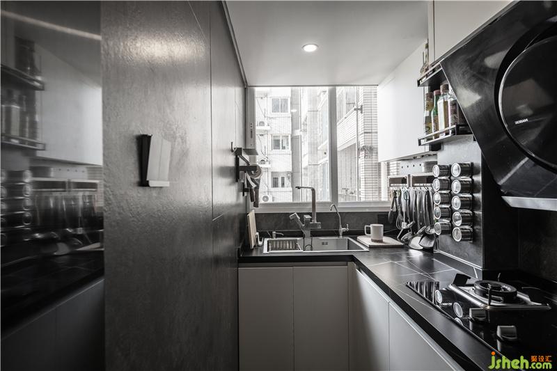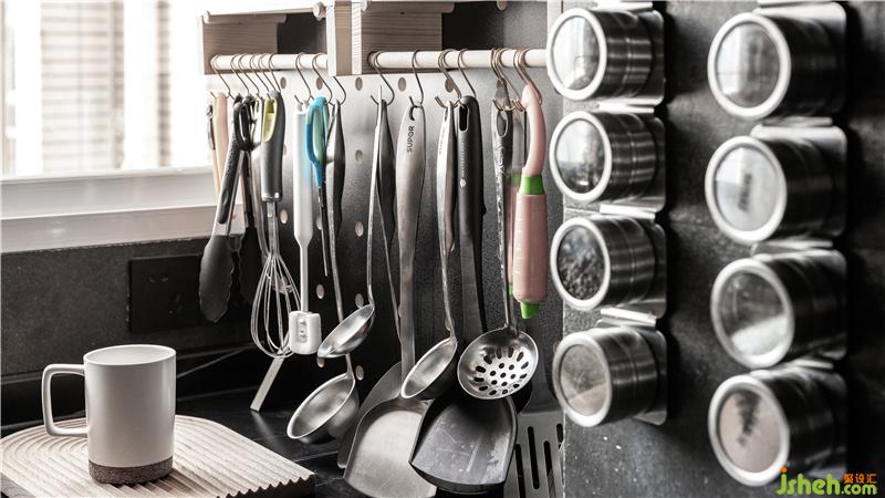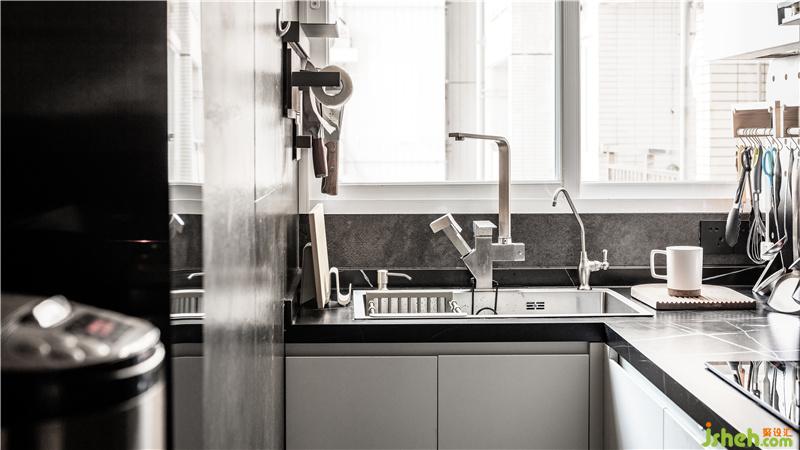 廚房石材采用同色系,室內(nèi)設(shè)計(jì)師希望硬裝的選材接近于大地色,一個(gè)家要把自然引進(jìn)來(lái),金屬、木材、石材,水、土,人可以通過(guò)接觸自然的材料而獲得能量。