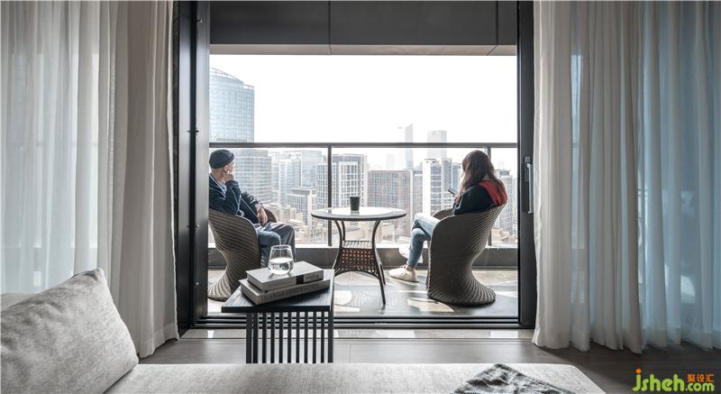 回家打開門的這一大面落地玻璃,窗外面的景色映入眼簾,光線和景色融入空間,使空間充滿活力,歸家這一刻是喜悅和期待的。