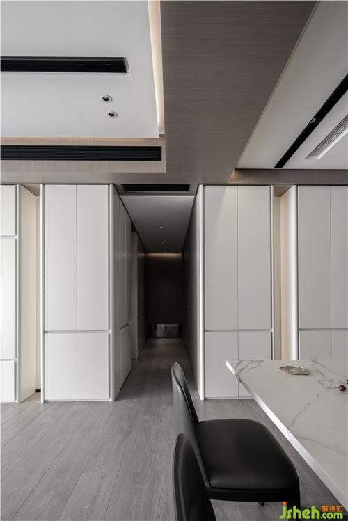 客餐廳整個(gè)空間采用的是無主燈的形式來呈現(xiàn)光源氛圍,大塊面積的白色天花增加了整個(gè)客廳的利落度,風(fēng)口形成的線條連接互相的關(guān)系,功能即是最高美學(xué),深圳裝修設(shè)計(jì)家里淡淡的木色調(diào)與環(huán)境和諧共生,營造一種愜意、簡雅的生活體驗(yàn)。