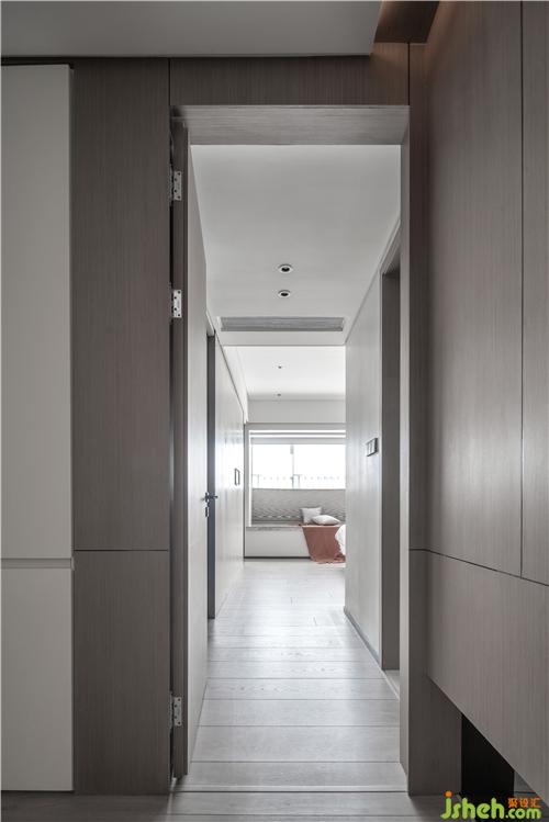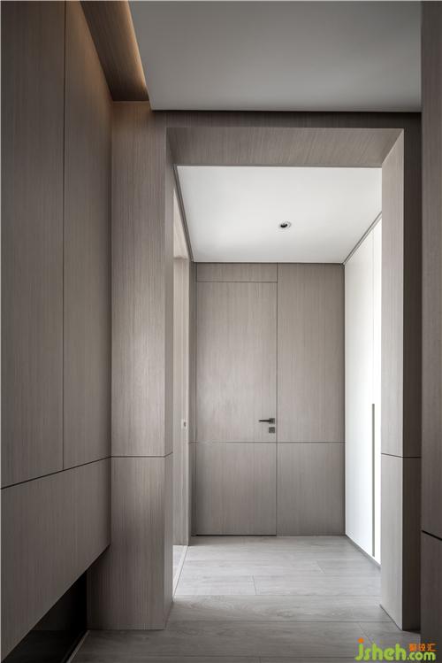 過道滿貼木飾面,工藝縫用黑色美縫填充,增加墻面的細(xì)節(jié),每一條線都應(yīng)該被好好對待。