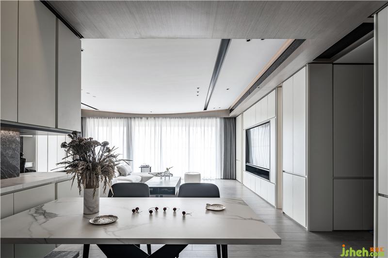 清晰的幾何形狀讓空氣和光線自由流通,隨意的在空間內(nèi)部留下痕跡,產(chǎn)生更自在流動(dòng)的穿透感受。所有的陳設(shè)都是剛剛好,深圳裝修設(shè)計(jì)每一套柜體的設(shè)計(jì)與成品家具的搭配是恰到好處,不多不少,又賦予了這190平方米面積最飽滿的線條與畫面。