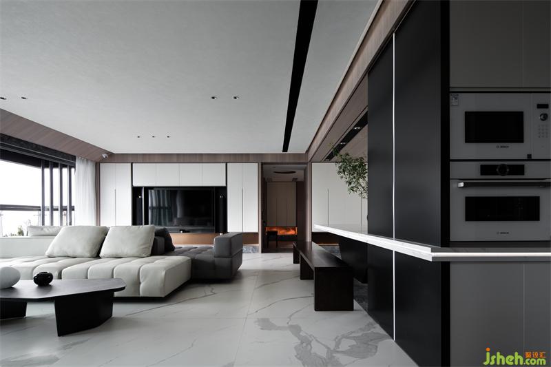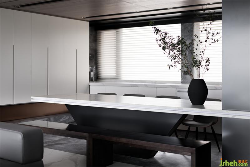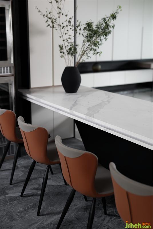 將美感與實(shí)用完美結(jié)合;巖板、木質(zhì)、黑鋼的材質(zhì)相互中和