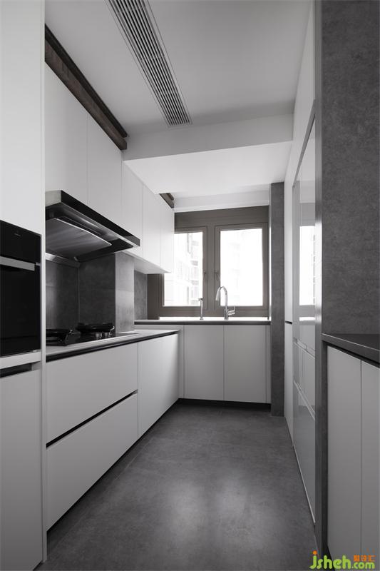 簡約時(shí)尚而又實(shí)用的烤漆柜門作為廚房的主色調(diào),地磚和墻磚同色系的方式讓空間默認(rèn)了一致性,這種一體化的設(shè)計(jì)彰顯格調(diào)的同時(shí)方便使用。