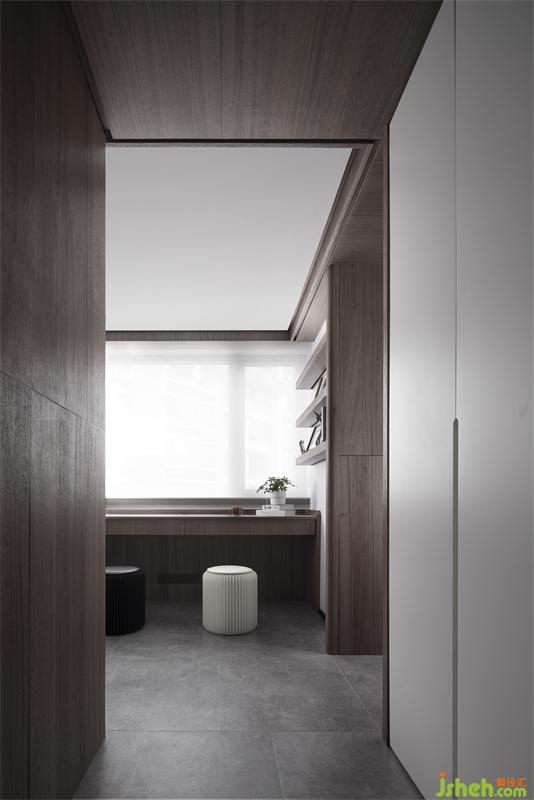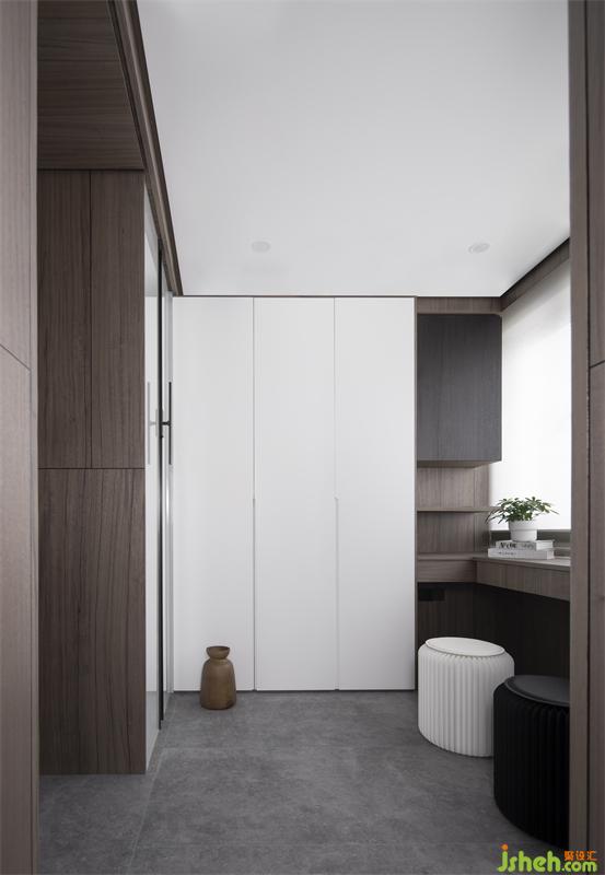 深圳家居設(shè)計(jì)將極簡做到極致才有高級感,黑與白,木與鋼,精致與質(zhì)樸,臥室簡潔的烤漆柜門一門到頂,讓空間收納最大化,搭配桌邊黑色木飾面吊柜,相得益彰,
