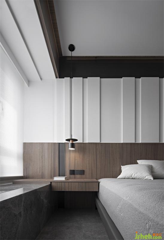 床頭木飾面墻裙拒絕掉多余的床頭或者軟包的繁瑣,更加簡單并且讓空間更加開闊,減少衛(wèi)生死角,簡約的空間展示著肌理、氣質(zhì)、線條的平衡美。