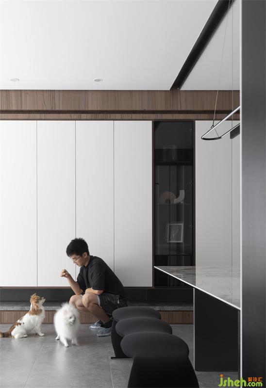 深圳家居設(shè)計(jì)師在設(shè)計(jì)的中尺度強(qiáng)調(diào)從容,將建筑美學(xué)運(yùn)用到室內(nèi)設(shè)計(jì)中,沙發(fā)背景和餐桌背景凹凸不規(guī)則墻面,讓背景墻一體化的同時(shí),擁有白墻的潔凈感卻又充滿趣味和觀賞價(jià)值。軟裝選擇粗放的布藝沙發(fā),利用這種對比方式產(chǎn)生自然、放松、寧靜的狀態(tài)。